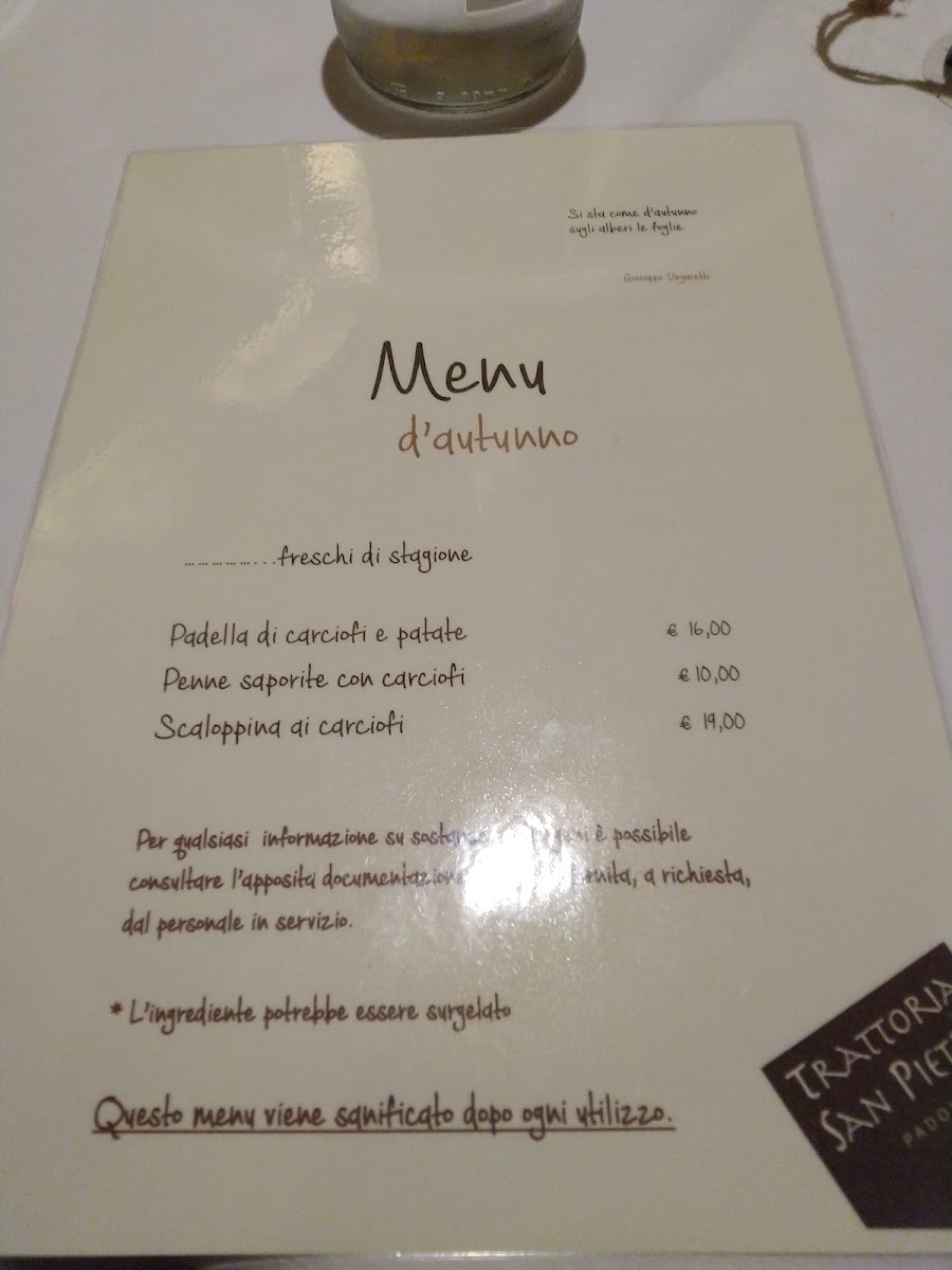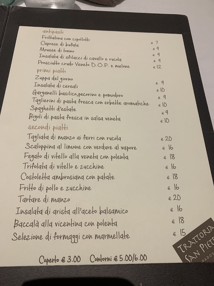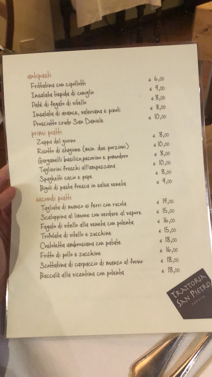 The Trattoria San Pietro Menu is a delightful exploration of authentic Italian cuisine, nestled in the heart of Padova. Whether you’re craving a hearty pasta dish, a fresh seafood delight, or a classic Italian pizza, the menu offers something for every taste. The ingredients are always fresh, sourced locally where possible, ensuring that each dish is a true representation of traditional Italian flavors. The cozy atmosphere of the restaurant complements the variety of options available, making it the perfect spot for a casual meal or a celebratory feast.
